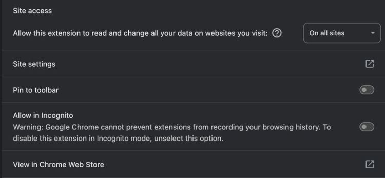 Theo mặc định, tiện ích mở rộng trình duyệt bị tắt trong các phiên duyệt web riêng tư—nhưng bạn có thể chọn bật chúng. Nếu bạn đã cho phép các tiện ích mở rộng cụ thể chạy ở chế độ riêng tư, chúng có thể thu thập dữ liệu về các trang web bạn truy cập và hành động của bạn. Vì vậy, ngay cả khi bạn nghĩ rằng hoạt động của mình là riêng tư, các tiện ích mở rộng này vẫn có thể theo dõi bạn trong nền.