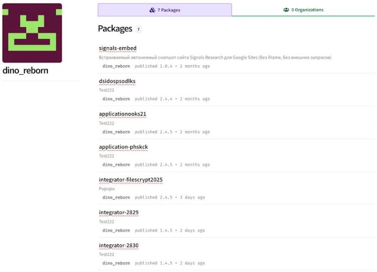 Các gói npm độc hại, được phát hành bởi một tác nhân đe dọa có tên " dino_reborn " từ tháng 9 đến tháng 11 năm 2025, được liệt kê bên dưới. Tài khoản npm không còn tồn tại trên npm tại thời điểm viết bài.