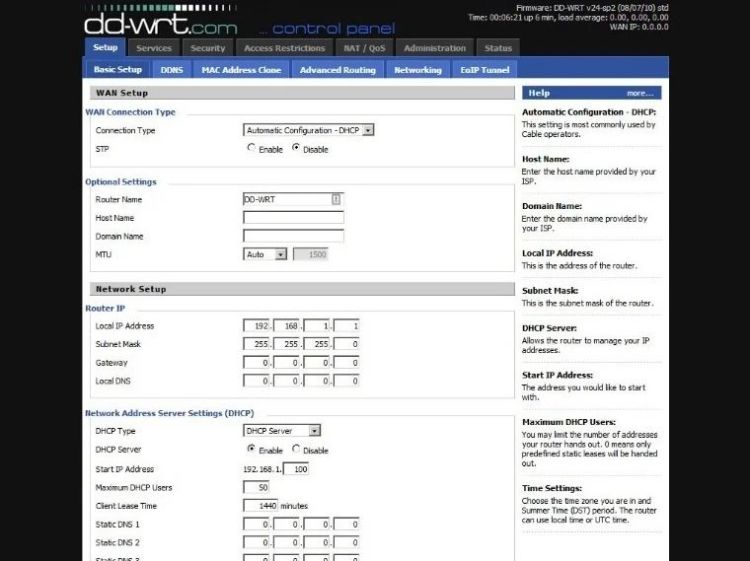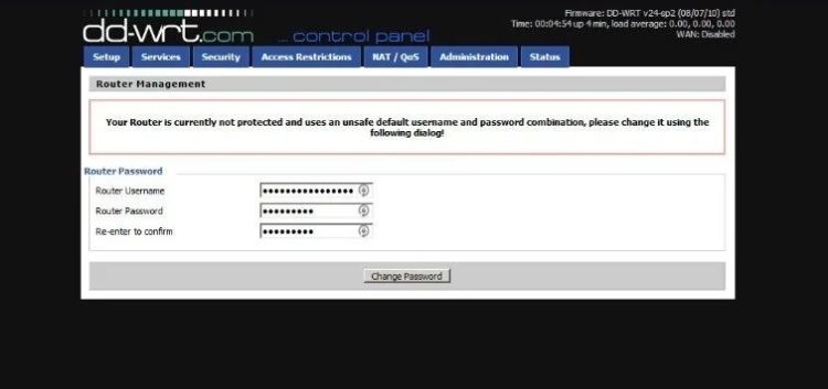 Bước 4:  Bạn sẽ được nhắc đặt lại tên người dùng và mật khẩu mặc định. Sau bước đó, bạn có thể chuyển sang các bước cơ bản trong quy trình cấu hình bộ định tuyến mới của mình. Đối với người dùng doanh nghiệp và những người có yêu cầu mạng nâng cao hơn, DD-WRT cung cấp nhiều khả năng nâng cao, vì vậy việc chạy qua mọi thứ nằm ngoài phạm vi của bài viết này. Nhưng đối với hầu hết các triển khai tại nhà và doanh nghiệp nhỏ, bạn sẽ cần đặt loại kết nối cho mạng diện rộng (WAN) của mình, nghĩa là nhà cung cấp internet của bạn. Nói chung, điều này thường sẽ nằm trong Giao thức cấu hình máy chủ động (DHCP), vì vậy nếu bạn không chắc chắn, đó là nơi tốt để bắt đầu.