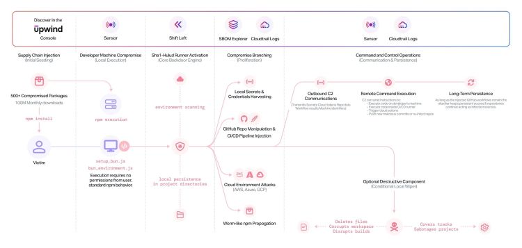 Bên cạnh việc mượn toàn bộ chuỗi lây nhiễm của biến thể tháng 9 ban đầu, cuộc tấn công này còn cho phép kẻ tấn công truy cập trái phép vào tài khoản người bảo trì npm và phát hành các phiên bản trojan hóa các gói của chúng. Khi các nhà phát triển không cảnh giác tải xuống và chạy các thư viện này, mã độc được nhúng sẽ tạo cửa hậu cho máy tính của họ, quét các bí mật và trích xuất chúng vào kho lưu trữ GitHub bằng cách sử dụng các mã thông báo bị đánh cắp.