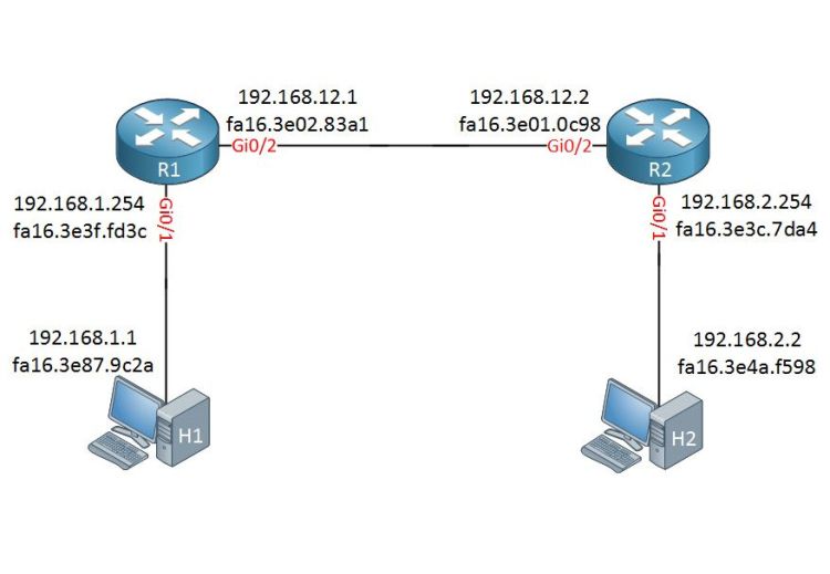 H2 có địa chỉ IP là 192.168.2.2 và đã cấu hình địa chỉ IP là 192.168.2.254 làm cổng mặc định.