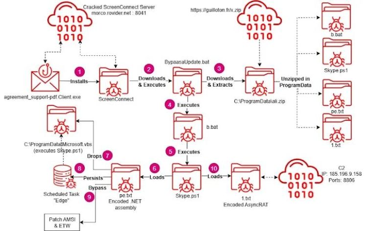 Tiết lộ này được đưa ra khi Acronis trình bày chi tiết về quá trình phát triển liên tục của chiến dịch ConnectWise ScreenConnect bị trojan hóa sử dụng phần mềm truy cập từ xa để thả AsyncRAT, PureHVNC RAT và trojan truy cập từ xa (RAT) dựa trên PowerShell tùy chỉnh trên các máy chủ bị nhiễm trong các cuộc tấn công kỹ thuật xã hội nhằm vào các tổ chức của Hoa Kỳ kể từ tháng 3 năm 2025.