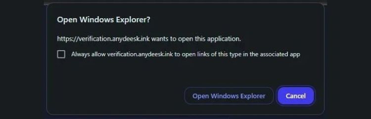Chuỗi tấn công bao gồm việc tạo một trang Cloudflare Turnstile giả mạo trước khi tải xuống trình cài đặt AnyDesk giả mạo và yêu cầu người dùng nhấp vào hộp kiểm để hoàn tất bước xác minh. Tuy nhiên, hành động này lại kích hoạt một thông báo bật lên yêu cầu họ mở Windows File Explorer.