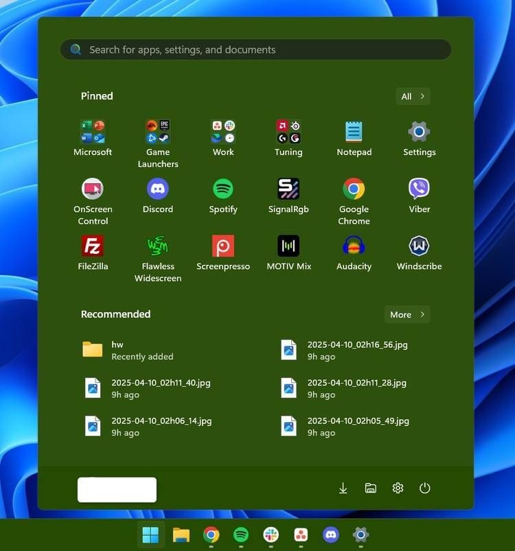 Nếu bạn không ghim các ứng dụng và thư mục của mình vào Start Menu, bạn đang bỏ lỡ một điều. Đây là một cách tuyệt vời để dọn dẹp màn hình nền của bạn bằng cách di chuyển các ứng dụng thường dùng vào một không gian có tổ chức hơn. Giữ cho màn hình nền của bạn sạch sẽ và chỉ dành riêng cho các mục thiết yếu nhất. Đây cũng là một nơi tiện dụng cho các ứng dụng bạn sử dụng thỉnh thoảng, như phần mềm quản lý thiết bị chơi game, trình điều khiển đồ họa hoặc trình khởi chạy trò chơi.