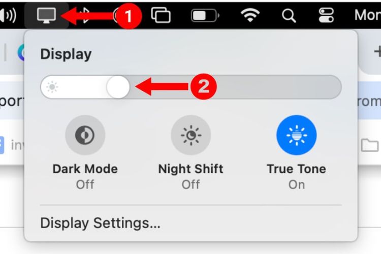 Bạn cũng có thể vào thanh menu, nhấp vào biểu tượng màn hình, sau đó sử dụng thanh trượt để điều chỉnh độ sáng màn hình.