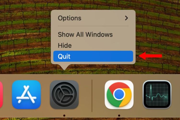 Do đó, bạn nên luôn thoát ứng dụng bằng phím tắt Command+Q. Nếu có dấu chấm bên dưới biểu tượng ứng dụng trong Dock, hãy nhấp chuột phải vào dấu chấm đó và chọn tùy chọn "Thoát" ở cuối.