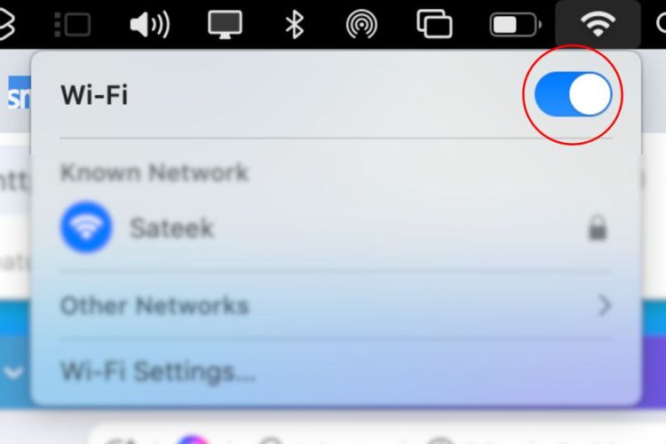 Vào thanh menu, nhấp vào nút Wi-Fi và Bluetooth rồi tắt kết nối không dây.
