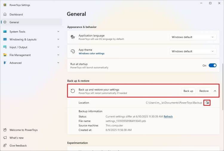 Để thiết lập bản sao lưu cấu hình PowerToys của bạn, hãy làm theo các bước sau:
