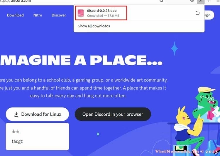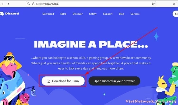 Bây giờ hãy mở trình duyệt web và truy cập trang web Discord chính thức. Nhấp vào nút "Tải xuống cho Linux".