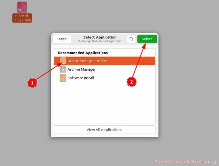 Bạn sẽ thấy một vài tùy chọn để chọn. Nhấp vào "Trình cài đặt gói Gdebi" và nhấn nút "Chọn".