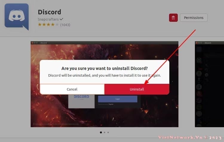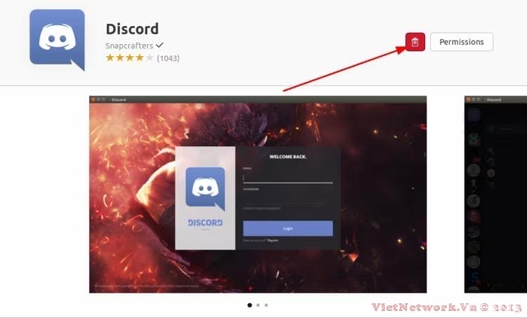 Nếu bạn muốn xóa Discord khỏi máy tính để bàn của mình, hãy quay lại trang ứng dụng trên cửa hàng phần mềm. Nhấn biểu tượng thùng rác màu đỏ ở bên phải.