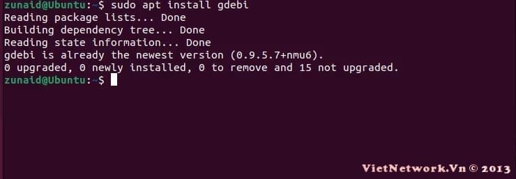 Nếu bạn đang sử dụng bản cài đặt Ubuntu tối thiểu, trước tiên bạn cần cài đặt "Trình cài đặt gói Gdebi" trên máy tính để bàn của mình. Bạn có thể cài đặt nó từ cửa hàng Phần mềm Ubuntu như chúng tôi đã trình bày ở trên. Hoặc bạn có thể cài đặt nó bằng lệnh này: