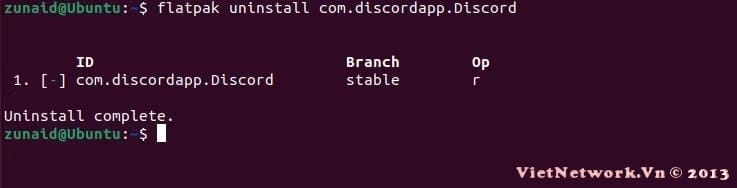 Nếu bạn muốn xóa Discord bằng Flatpak, hãy sử dụng lệnh này: