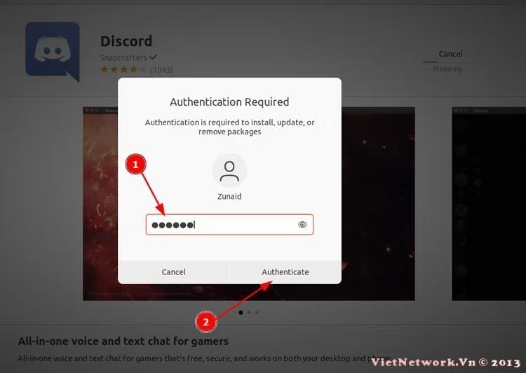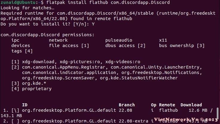 Bạn sẽ được yêu cầu xác thực bằng mật khẩu của mình. Sau đó, bạn đã sẵn sàng cài đặt ứng dụng Flatpak. Để cài đặt Discord bằng Flatpak, hãy chạy lệnh này:
