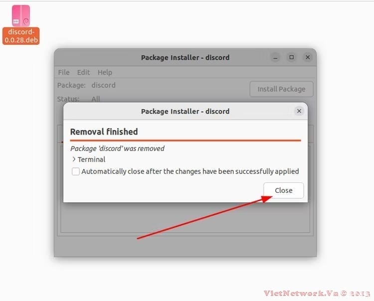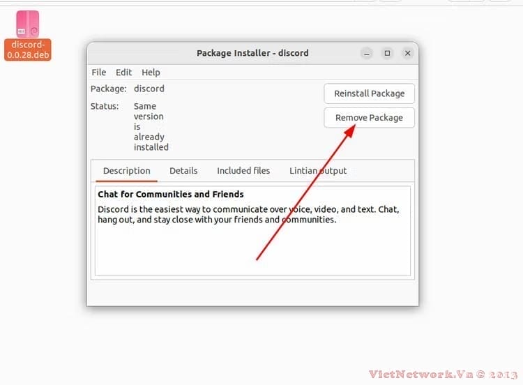Nếu muốn xóa ứng dụng, bạn cần mở lại ứng dụng đó bằng "Trình cài đặt gói Gdebi" giống như cách bạn đã làm trước đó. Lần này, bạn sẽ thấy tùy chọn ở bên phải để xóa gói. Nhấp vào nút "Xóa gói".