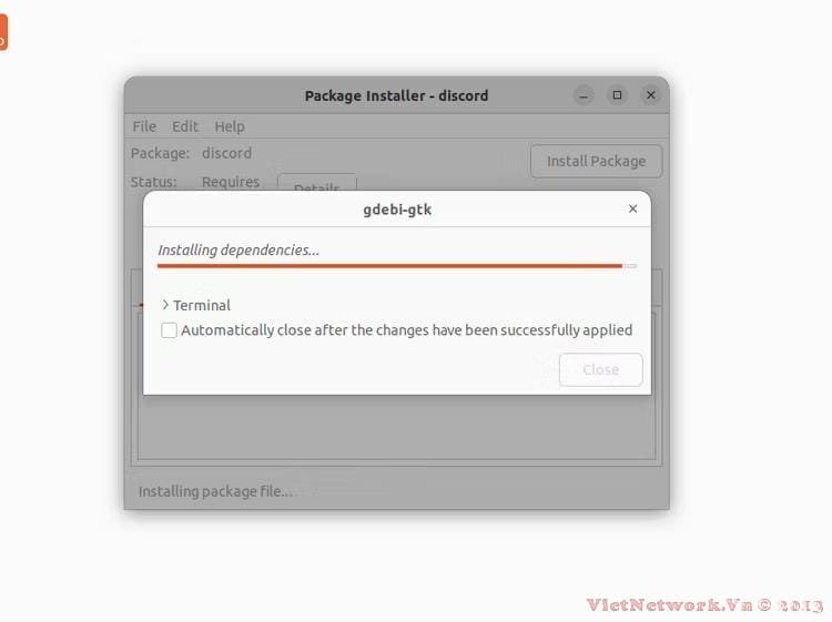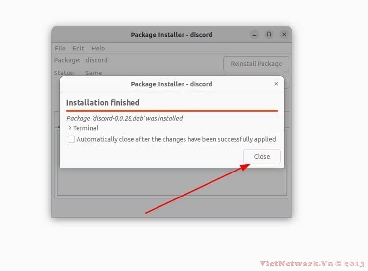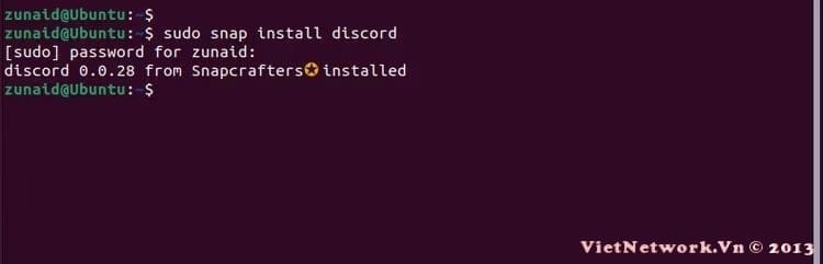 Nhập mật khẩu của bạn khi được nhắc. Discord sẽ được cài đặt sau một thời gian. Bạn sẽ nhận được thông báo sau khi cài đặt thành công.