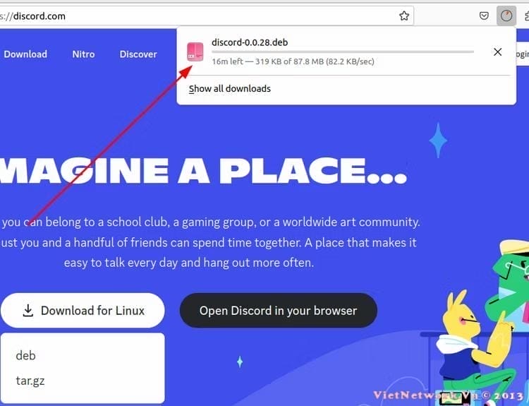 Thao tác này sẽ bắt đầu tải xuống gói DEB trên máy tính để bàn của bạn.