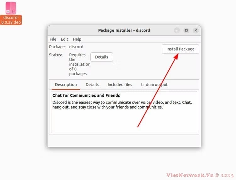 Bạn sẽ thấy một cửa sổ mới có thông tin chi tiết về gói. Nhấn nút "Cài đặt gói" để bắt đầu cài đặt Discord.