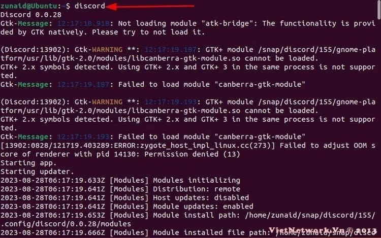 Để mở Discord từ thiết bị đầu cuối, hãy sử dụng lệnh bên dưới: