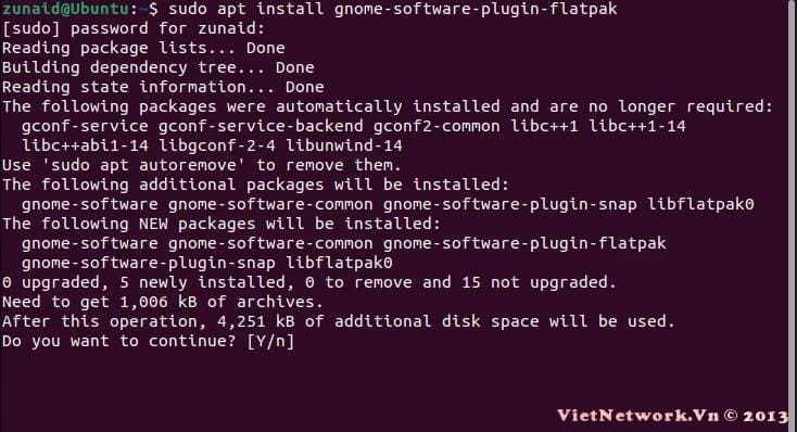 Tiếp theo, cài đặt plugin Flatpak cho ứng dụng phần mềm Gnome bằng cách chạy lệnh này: