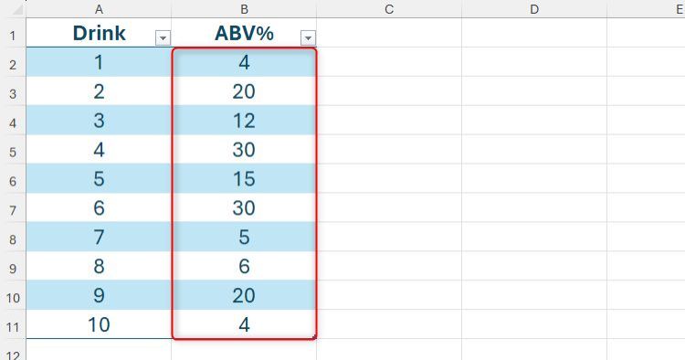 Ví dụ, hãy tưởng tượng bạn được gửi bảng tính này và bạn muốn chuyển các giá trị trong cột B thành phần trăm.