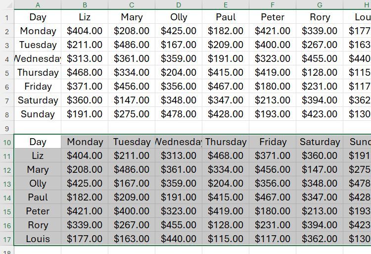Việc lật dữ liệu theo chiều ngang sang chiều dọc theo cách thủ công sẽ mất nhiều thời gian và chắc chắn sẽ dẫn đến lỗi sao chép. May mắn thay, bạn có thể thực hiện việc này chỉ trong vài bước bằng cách sử dụng Paste Special.