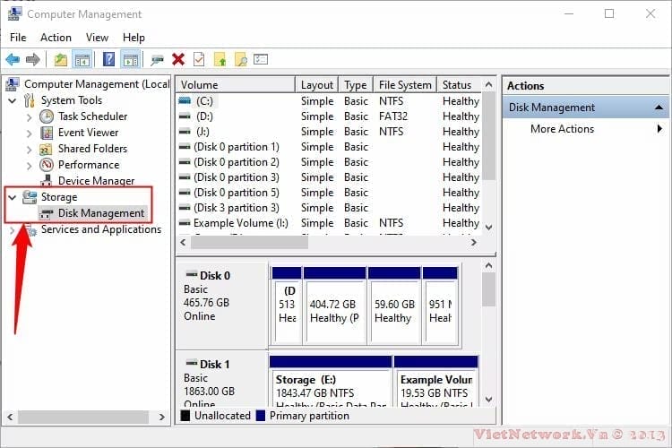 1. Mở Disk Management thông qua Menu quản lý máy tính
