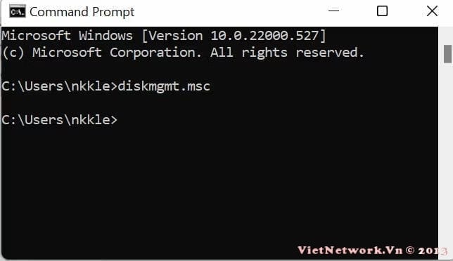 Nhập diskmgmt.msc trong Command Prompt hoặc PowerShell, rồi nhấn Enter.