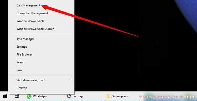 3. Sử dụng Power User Menu để chạy quản lý đĩa