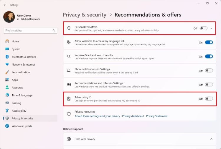 Tắt công tắc "Ưu đãi được cá nhân hóa".