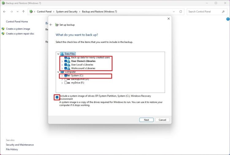 Đánh dấu vào tùy chọn để bao gồm hình ảnh hệ thống của ổ đĩa.