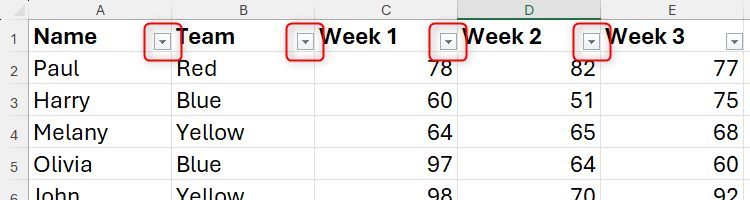 Cho dù bạn đang làm việc với dữ liệu được định dạng dưới dạng bảng hay một chuỗi dữ liệu liền kề trong các ô chưa định dạng, hãy chọn bất kỳ ô nào trong phạm vi và nhấn Ctrl+Shift+L để thêm các nút lọc vào hàng đầu tiên của dữ liệu.