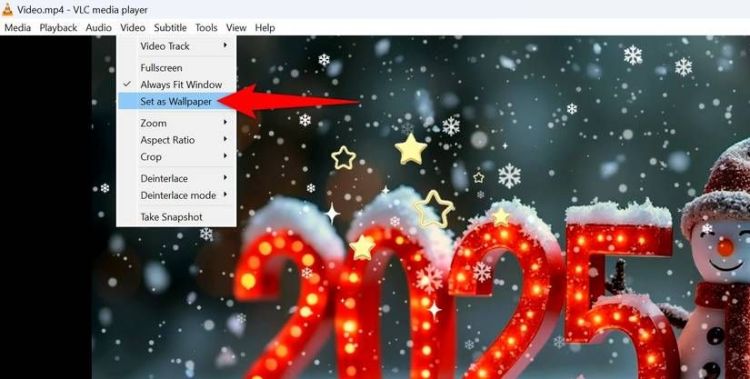 VLC cung cấp một tính năng cho phép bạn sử dụng video làm hình nền màn hình. Để sử dụng tính năng này, hãy tìm tệp video của bạn và mở tệp đó bằng VLC. Trong khi video của bạn đang phát, từ thanh menu của VLC, hãy chọn Video > Đặt làm hình nền.