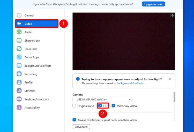 2. Cho phép video HD trông sắc nét hơn trong các cuộc họp của bạn