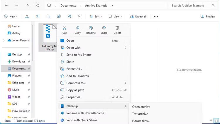 Ứng dụng này cũng tích hợp hoàn toàn với menu ngữ cảnh nhấp chuột phải trên Windows 11, nghĩa là bạn không cần phải khởi chạy ứng dụng để thực hiện các thao tác cơ bản, như thêm tệp vào kho lưu trữ hoặc giải nén nội dung của tệp ZIP ở đâu đó.