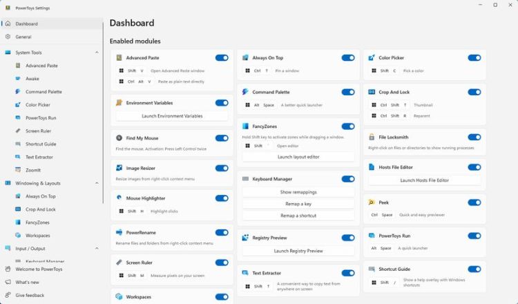 Tôi sử dụng khoảng một tá tiện ích từ PowerToys hàng ngày cho cả công việc và các dự án giải trí của mình. Tất cả chúng đều có thể được bật hoặc cấu hình từ bên trong PowerToys—không cần phải tìm kiếm các tệp cấu hình hoặc tải xuống bên ngoài.