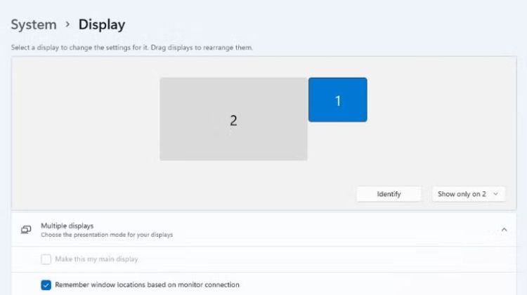 Trong cửa sổ "Cài đặt Màn hình", bạn sẽ thấy sơ đồ các màn hình hiện đang được kết nối với máy tính. Nếu màn hình thứ hai không được phát hiện, nó sẽ không xuất hiện.