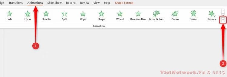 Chuyển tiếp là cách bản trình bày PPT của bạn chuyển từ trang trình bày này sang trang trình bày tiếp theo. Chúng có thể được truy cập trong tab "Chuyển tiếp".