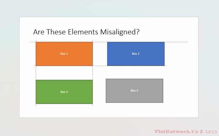 Các đối tượng bị lệch trên slide PPT nhảy ra ngoài như ngón tay cái bị đau. Chúng trông luộm thuộm và cho người xem biết rằng bạn đã nhanh chóng ghép các slide lại với nhau một cách thiếu quan tâm và chú ý.