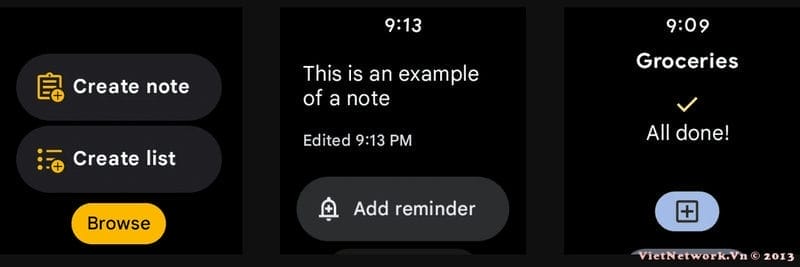 Bạn có thể đặt các ghi chú riêng lẻ xuất hiện dưới dạng Ô xem, nơi đặt các thông tin hữu ích như chỉ đường hoặc hướng dẫn cách mặt đồng hồ của bạn một lần vuốt. Keep cũng là một cách tuyệt vời để luôn đứng đầu danh sách mua sắm, giúp người thân của bạn có thể thêm các mặt hàng ở nhà trong khi bạn đi mua sắm xung quanh, kiểm tra các giao dịch mua trên cổ tay của bạn.