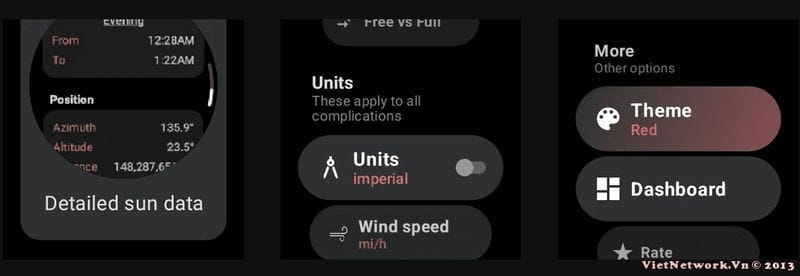 Cần một phong vũ biểu? Thông tin thủy triều? Chỉ số chất lượng không khí? Đồng hồ thế giới? Một số chức năng đi kèm đã được đưa vào Pixel Watch của bạn, như thời gian bình minh và hoàng hôn, nhưng ứng dụng này cung cấp cho bạn các Ô rất chi tiết, nhất quán về mặt hình ảnh để mở rộng và thay thế các tùy chọn có sẵn. Khi đi sâu vào cài đặt, bạn cũng có thể tạo chủ đề cho ứng dụng để phù hợp hơn với mặt đồng hồ bạn đã chọn.