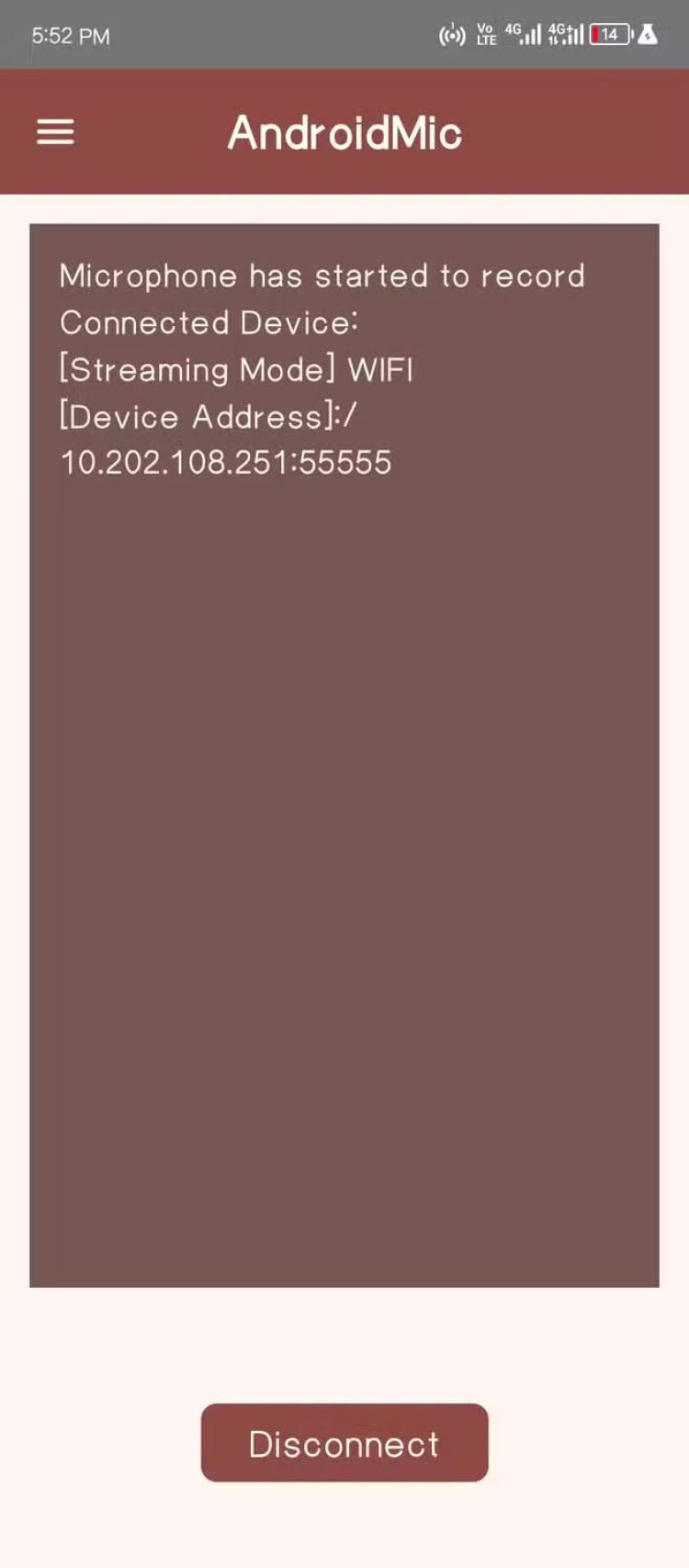 Nếu mọi việc suôn sẻ, ứng dụng AndroidMic trên PC sẽ hiển thị thông báo "đã kết nối" trong nhật ký. Ngay lập tức, micro sẽ bắt đầu phát trực tuyến trong ứng dụng AndroidMic. Bạn có thể kiểm tra kết nối này bằng cách mở ứng dụng Recorder hoặc truy cập một trong các trang web kiểm tra micro. Bạn sẽ được nhắc chọn giữa micro tích hợp và micro gắn ngoài. Micro gắn ngoài là micro của điện thoại.