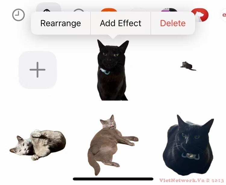 Khi bạn hài lòng, hãy nhấn vào "Thêm Sticker" ở cuối trang. Sticker của bạn sẽ được thêm vào album Sticker của bạn. Nhấn và giữ nó, sau đó nhấn vào tùy chọn "Thêm hiệu ứng" để thêm các hiệu ứng như lấp lánh hoặc nhấn "Sắp xếp lại" để di chuyển các Sticker của bạn xung quanh. Bạn cũng sẽ tìm thấy tùy chọn "Xóa" Sticker của mình tại đây.