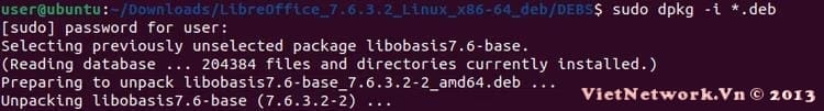Cuối cùng, cài đặt LibreOffice bằng lệnh dpkg :