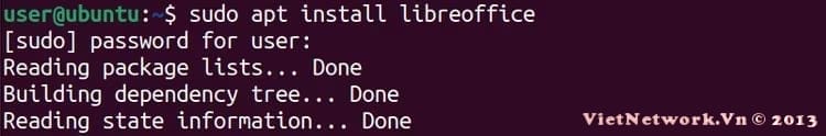 Sau đó, cài đặt bộ LibreOffice bằng trình quản lý gói APT: