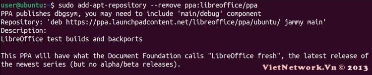 Bạn cũng có thể xóa kho lưu trữ LibreOffice PPA khỏi hệ thống Ubuntu của mình bằng lệnh bên dưới: