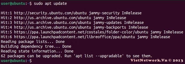 Tiếp theo, cập nhật danh sách gói Ubuntu của bạn với: