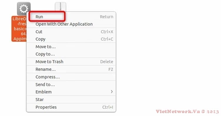 Bây giờ LibreOffice đã sẵn sàng để chạy, chỉ cần nhấp chuột phải vào Biểu tượng AppImage và chọn "Chạy".