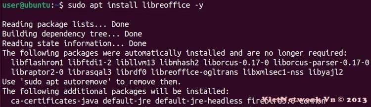 Sau khi cập nhật danh sách gói hệ thống của bạn, hãy cài đặt LibreOffice bằng lệnh apt install :