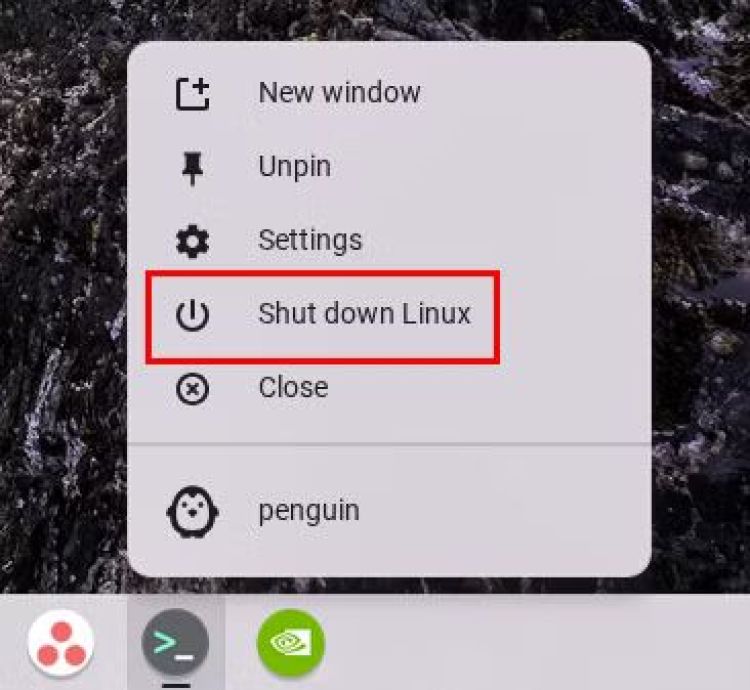 Sau đó, chỉ cần khởi động lại Linux bằng cách nhấp chuột phải vào biểu tượng terminal trong dock của bạn và chọn Shut Down Linux, sau đó chọn terminal một lần nữa. Thao tác này sẽ cung cấp cho bạn terminal với Flathub được cài đặt đầy đủ và sẵn sàng sử dụng!